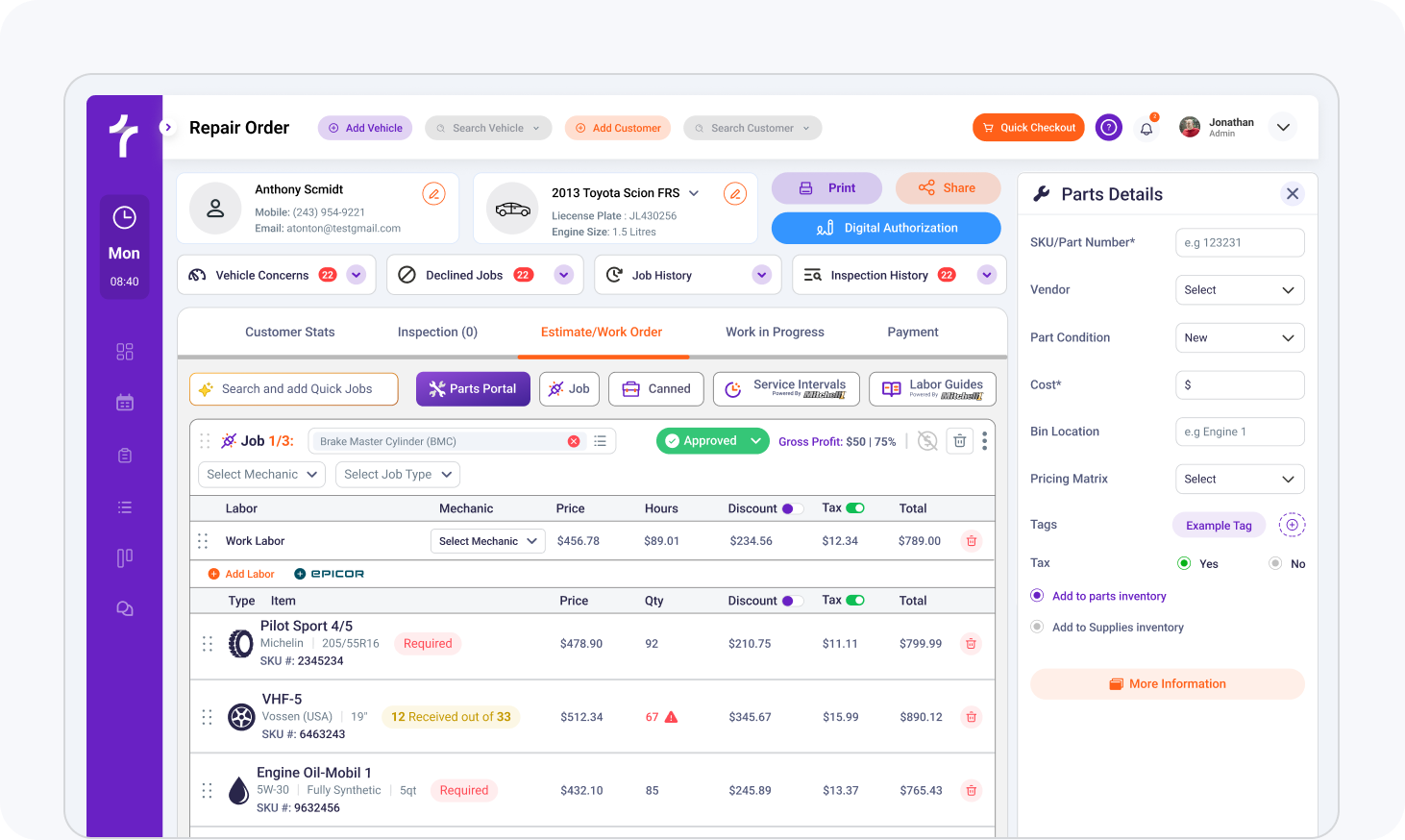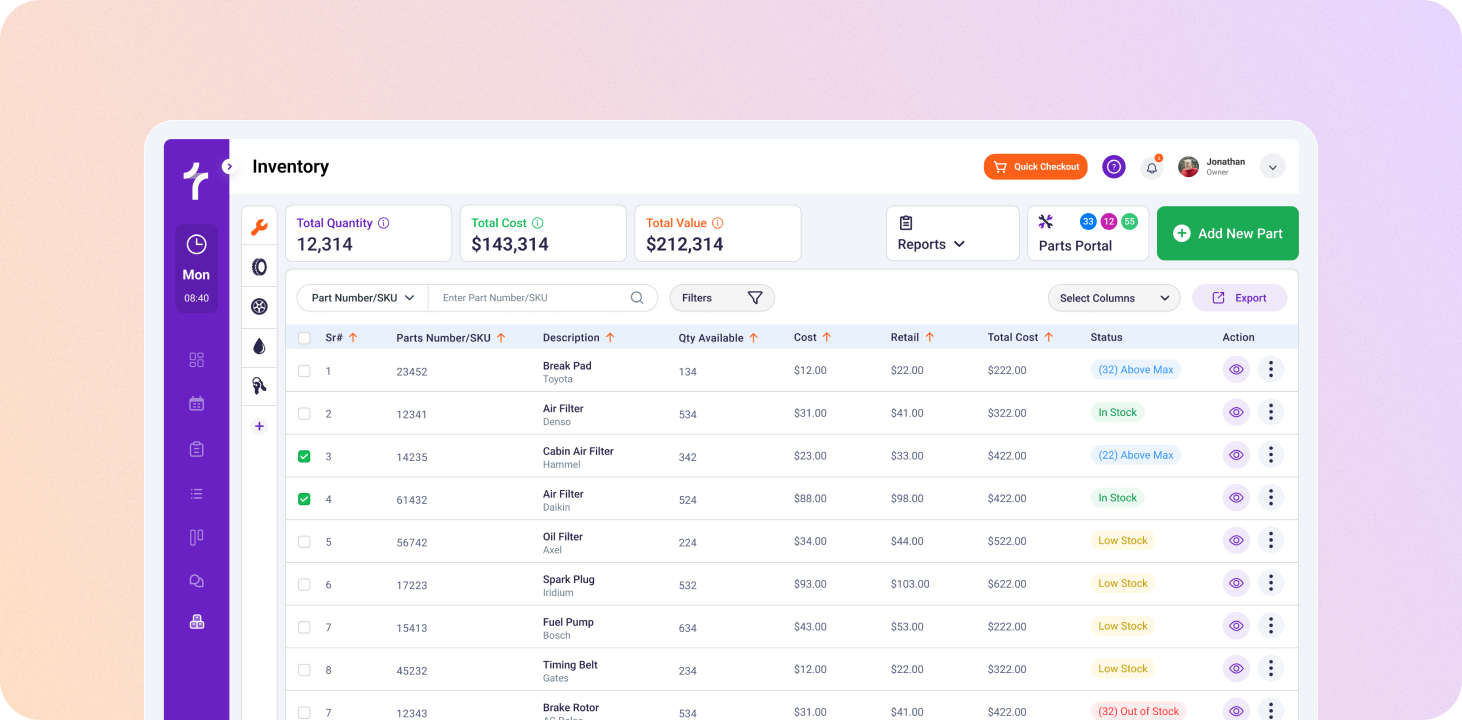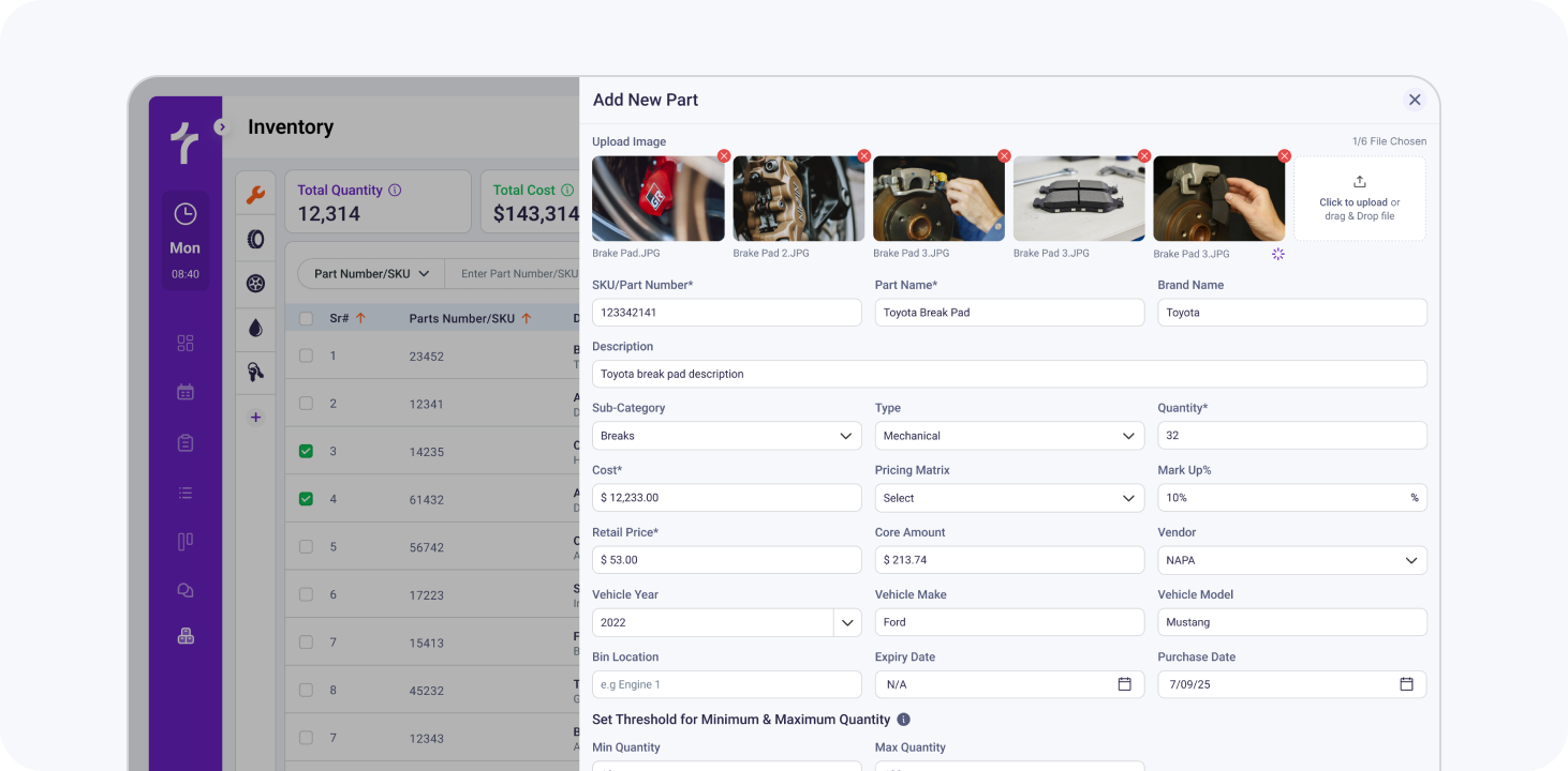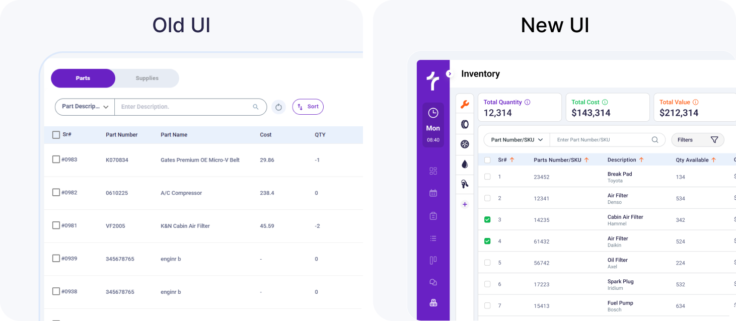 The design didn't just track inventory, It gave shops a profit aware system that understands the difference between two separate items like a part or a wheel.