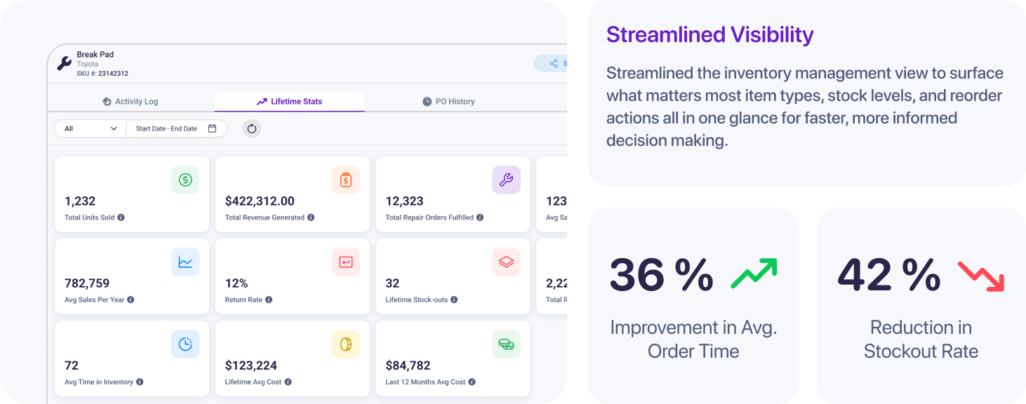 The result reduced items ordering time while giving shops real-time control over their entire parts ecosystem.
