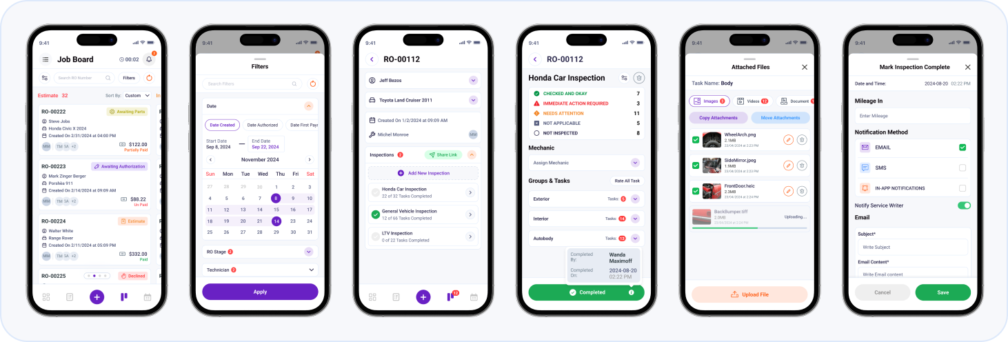 Multi-format support meant a video of engine noise, a photo of tire wear, and a document scan could live together, telling a complete story. The workflow became predictable: choose, inspect, attach, complete. One clear path that technicians followed without training.